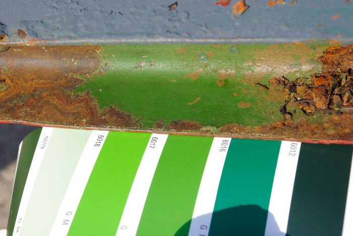 Potem Piotr spróbował znaleźć numery RAL kolorów użytych oryginalnie do pomalowania drezyn w fabryce. Jedna z drezyn była oryginalnie zielona...