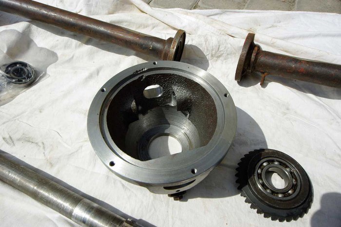 Potem druga wizyta u tokarza, który poprawiał obudowę wewnątrz, bo kółko zębate ocierało się wewnątrz o gniazda wodzika zmiany kierunku jazdy. Po tokarzu obudowa trafiła jeszcze raz do frezera, który nawiercił otwory na drugą pochwę półosi.