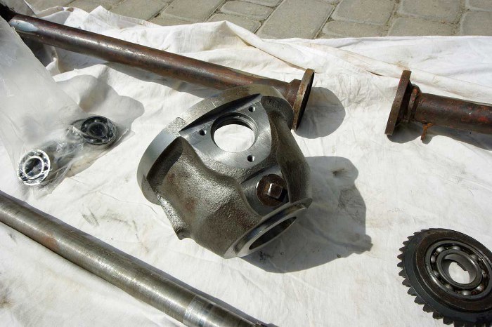 Ale pojawił się kolejny problem. Okazało się, że jedna z pochew półosi jest skrzywiona... Potem Piotr sprawdził ją u frezera i się okazało, że aż w trzech miejscach :( Na razie nie mamy koncepcji co z tym dalej. Piotr podejmie próby prostowania tego, ale w oddali rysuje się widmo dorabiania nowej.