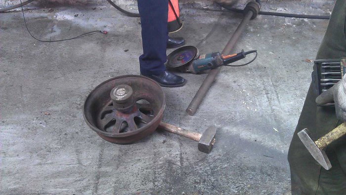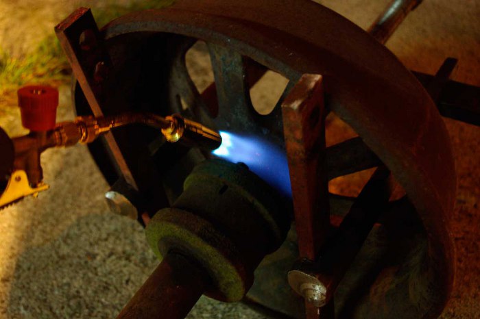 Czwarte koło stwierdziło, że jest mu dobrze na osi. Nie pomogło podgrzewanie propan-butanem (a potem i acetylenem).