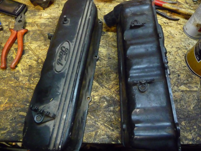Po pomalowaniu tych pokryw na czarno, znaczek Ford i żeberka zostaną wypolerowane.