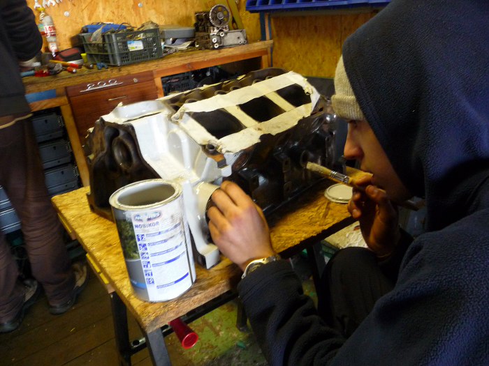 Tomek pomalował też pokrywę rozrządu. To jest na razie podkład, silnik zostanie pomalowany na czarno jak podkład wyschnie.