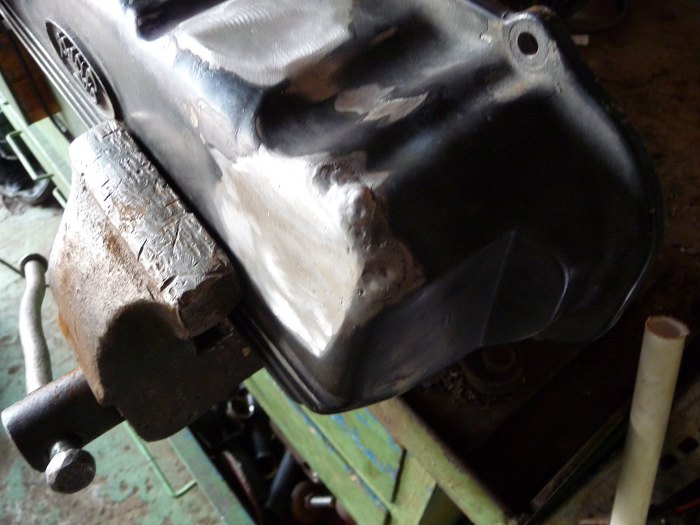 A ja się wziąłem za dokończenie pokryw zaworów, żeby je oddać do piaskowania i malowania. Dziurki po śrubach zostały zaspawane, spawacz zauważył, że jedna z pokryw była pęknięta, więc też to miejsce zaspawał.