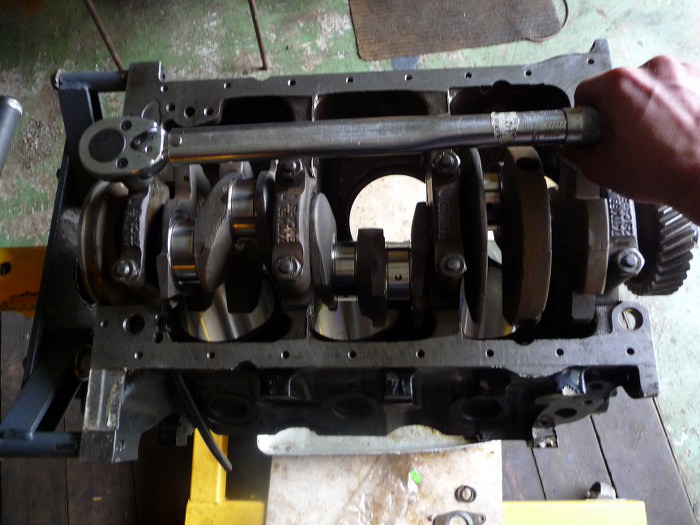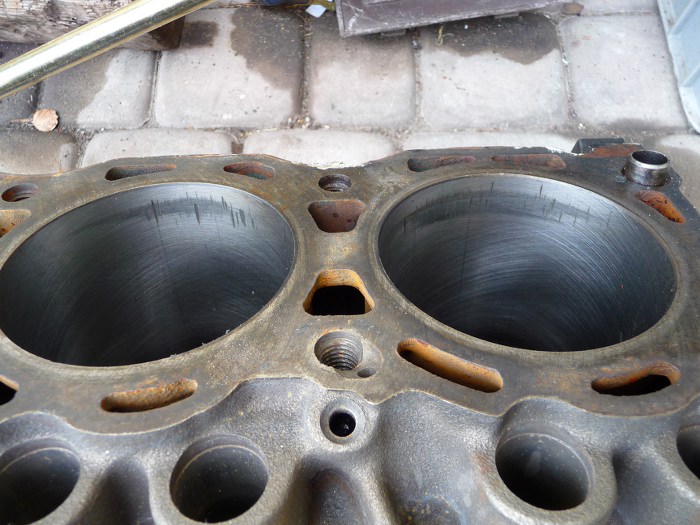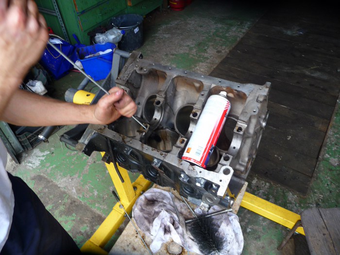 Blok po wizycie w szlifierni trzeba porządnie umyć. Jest to dość żmudna robota, bo zakamarków sporo, brud uciążliwy, a jeszcze trzeba umyć kanały olejowe i gwinty. Na szczęście był u mnie Tomek Brzózka, więc dogadaliśmy się, że on myje blok, a ja spawam mu taunusa :)