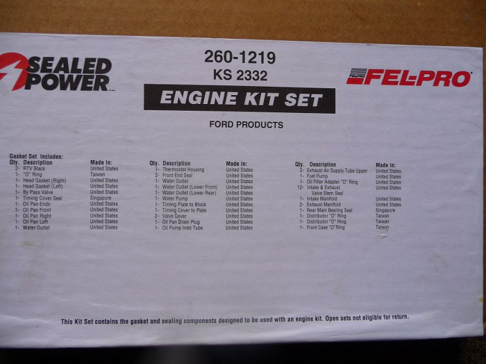Spis uszczelek zawartych w zestawie. Ilość niezła, pochodzenie też :) Uszczelki ze stanów są tańsze, niestety wszystkie od kolektora dolotowego wzwyż są inne niż europejskie i te trzeba dokupić. Ale i tak wychodzi sporo taniej. Poza tym Fel-Pro to dobre uszczelki, dobrze pasują, nawet te uszczelniacze i simeringi spoza stanów są dobrej jakości. Poza tym często w zestawach np. Glasera brakowało mi uszczelek gumowych pomiędzy blok a pokrywę rozrządu i klinów do czwartej stopki wału. Tych zestawów miałem już tzry w rękach i wszystkie są kompletne.