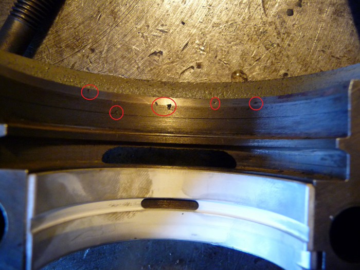 Co ciekawe - żeliwo w silnikach często jest kiepskie. Blok bez zastrzeżeń tym razem, ale w stopce wału widać pęcherzyki powietrza w odlewie. Dla normalnego użytku silnika nie ma to znaczenia.
