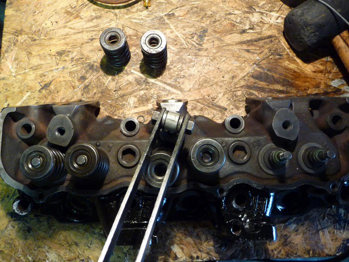 Po wymyciu zaworów, sprężyn, talerzyków i zamków można założyć uszczelniacze i spiąć to wszystko razem. Przyrząd do ściskania sprężyn pamięta jeszcze Fiata 126p :)