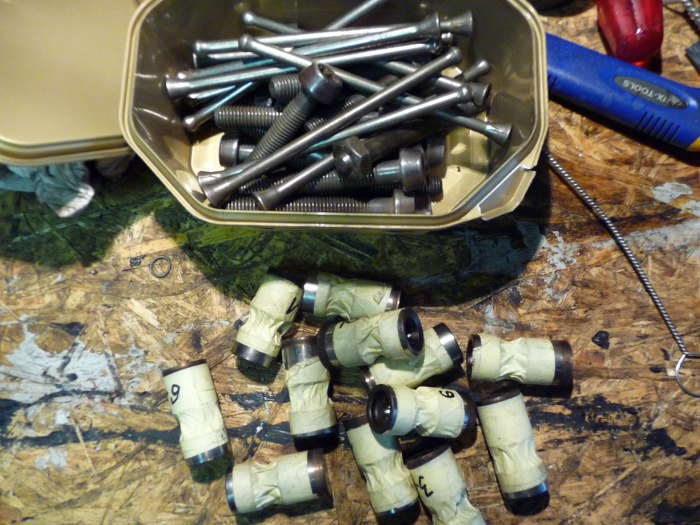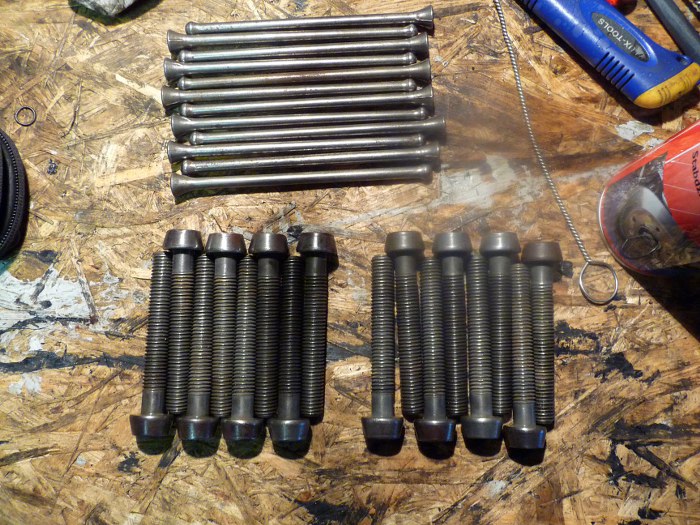Przygotowałem śruby głowic i drążki popychaczy zaworów, żeby nie szukać ich jak będą potrzebne.