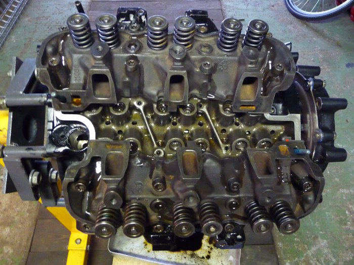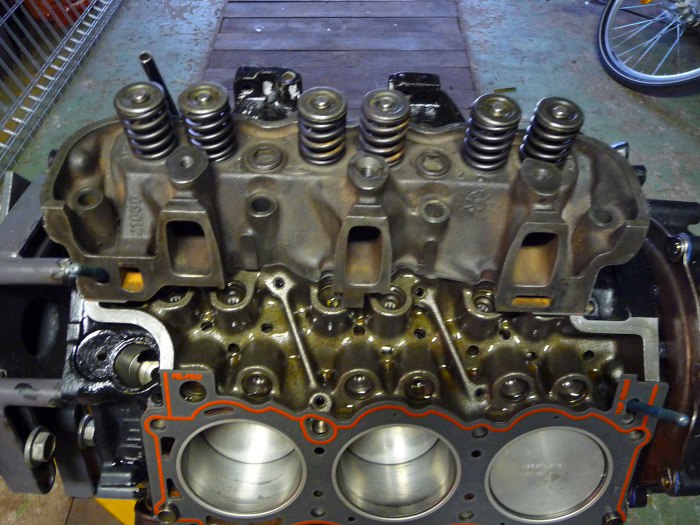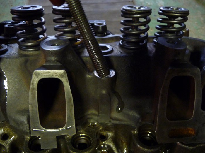Przyszła pora na głowice. Zawory docierał Trefl z kolegą. Głowice musiałem umyć, a szło to tak żmudnie, że aż najpierw je umyłem tylko na zewnątrz i pomalowałem (żeby tylko nie myć całych na raz). Potem jednak i tak musiałem je umyć z nagaru i syfu... i nie zrobiłem zdjęć, tak tego mycia nie lubię :)