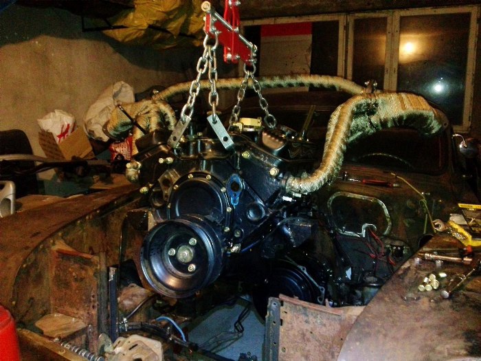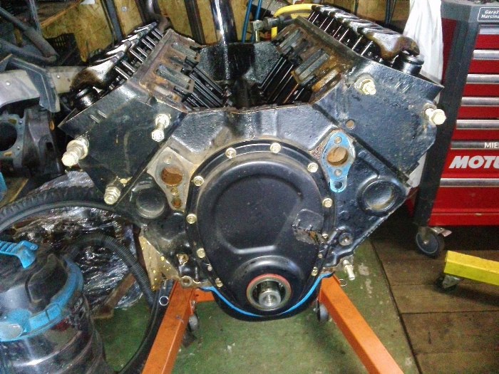 Przyjechał do mnie Dyra z kolejnym swoim silnikiem. 5.7l V8 z chevroleta z okolic roku '90. Silnik został kupiony z podobno jeżdżącego auta i włożony do Chevroleta z '53 roku Dyry. Tam dzielnie smażył laka - aż przestał.