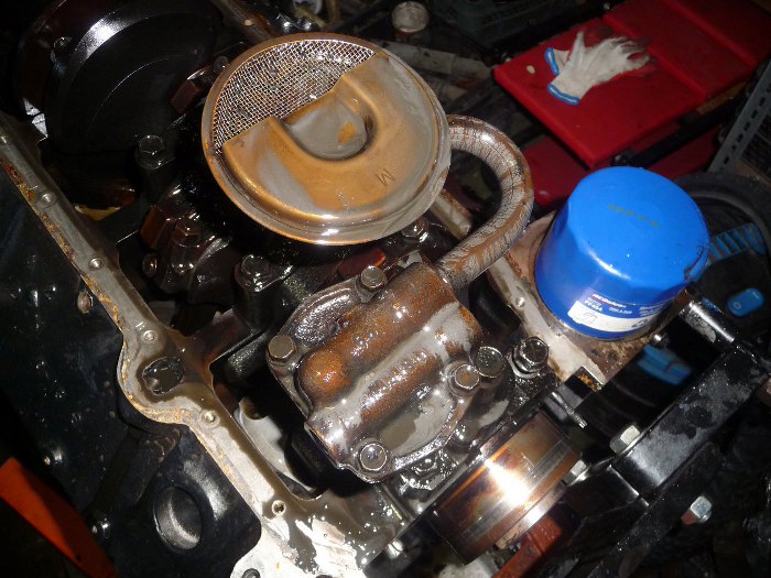 Silnik już u mnie na stojaku, zaczynamy rozkładanie. Rzuca się w oczy to, że silnik jest cały zalepiony szlamem olejowym. Dyra twierdzi, że i tak już sporo domył, zanim go włożył do auta, więc chyba lepiej nie wiedzieć jak ten silnik wyglądał wcześniej.