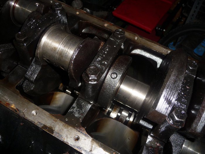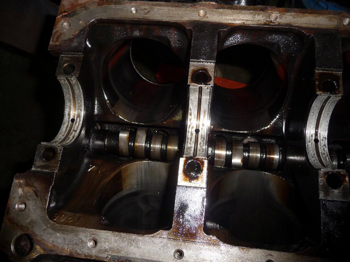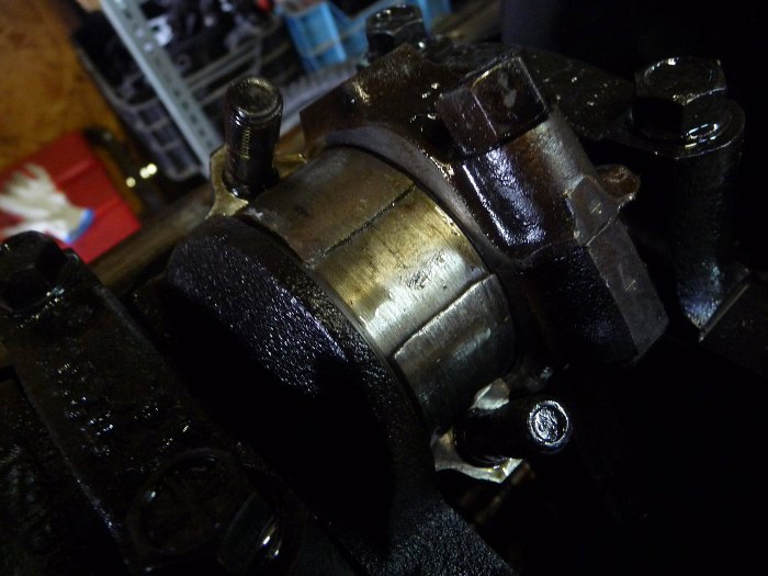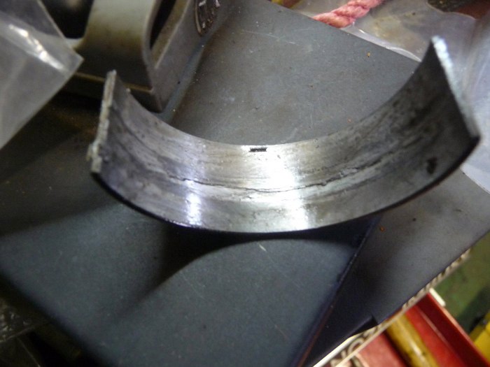Po wyjęciu wału korbowego okazało się, że panewki główne są całkiem dobre, pomijając opiłki w nie wepchnięte z zatartych panewek korbowych. Przynajmniej tu nic złego się nie działo.