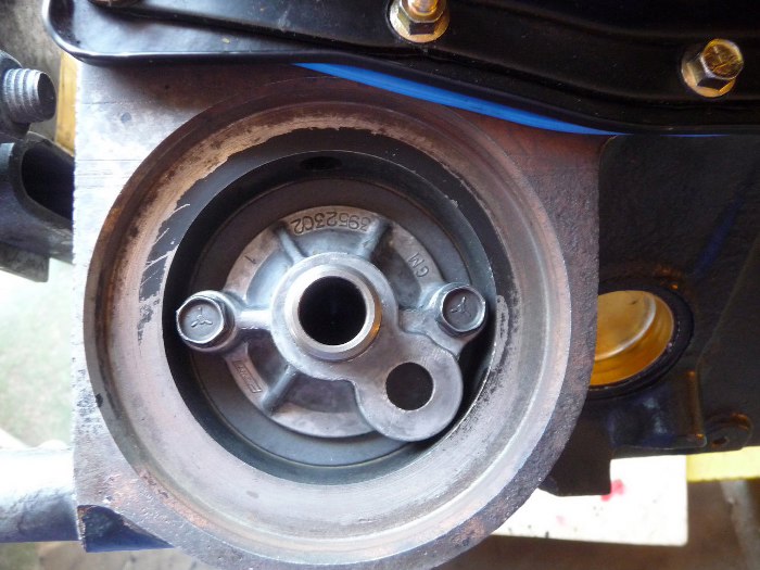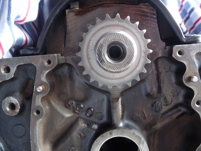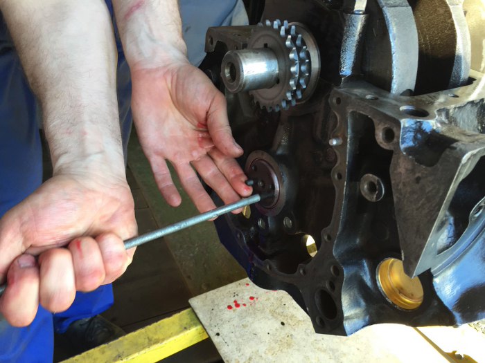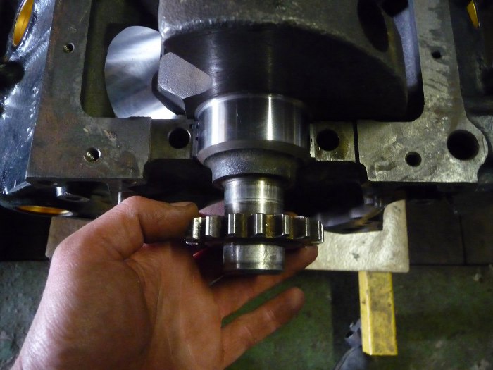 Położyłem wał korbowy na miejsce. Przy okazji ściągnąłem stare kółko zębate rozrządu.