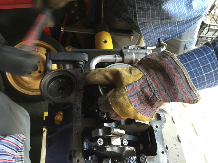 Gdy okazało się, że wszystko jest w porządku, można było zacząć składać wał na gotowo. Panewki główne dostały swoją porcję oleju.
