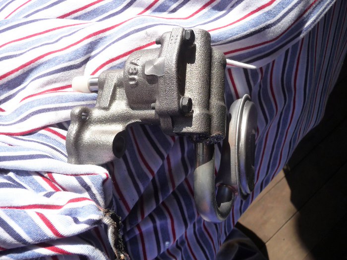 Na pompę oleju trzeba jeszcze założyć plastik trzymający na miejscu pręt idący do aparatu zapłonowego.