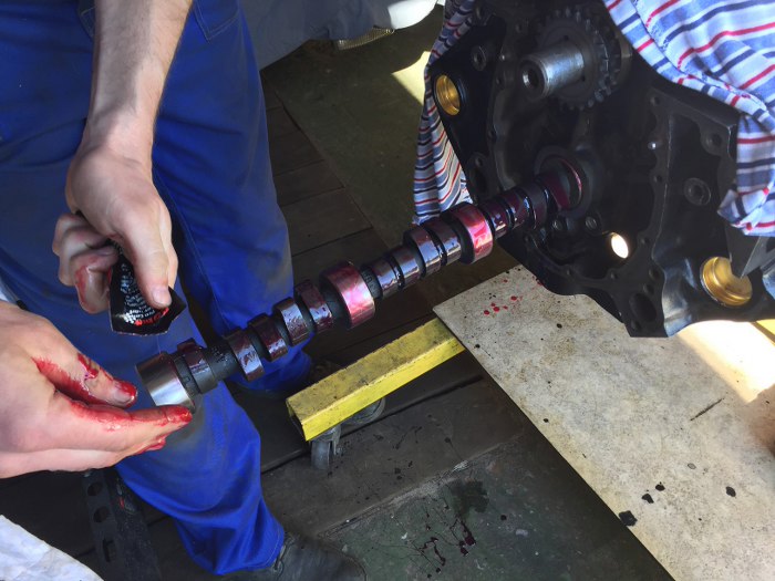 Włożyłem wałek rozrządu, smarując go obficie smarem montażowym.