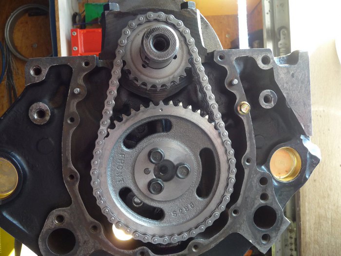 Założyłem łańcuch i przykręciłem koło zębate do wałka rozrządu.