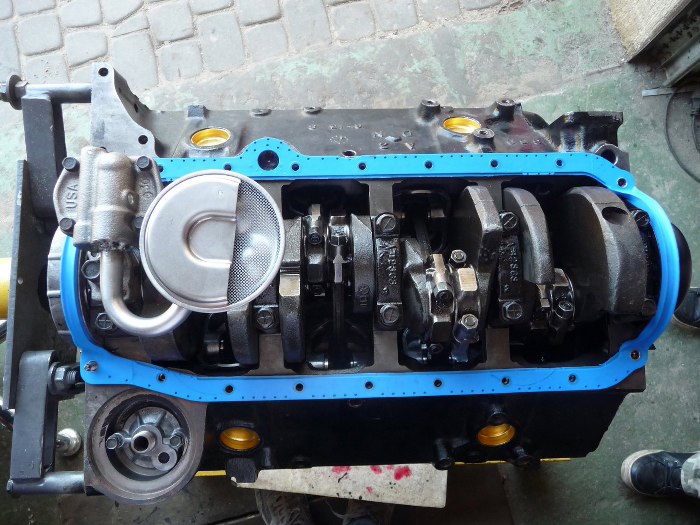 Chyba już wszystko na dole silnika gotowe, zakładamy zaraz miskę olejową. Nowa uszczelka.
