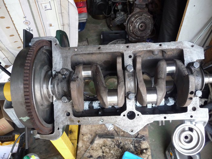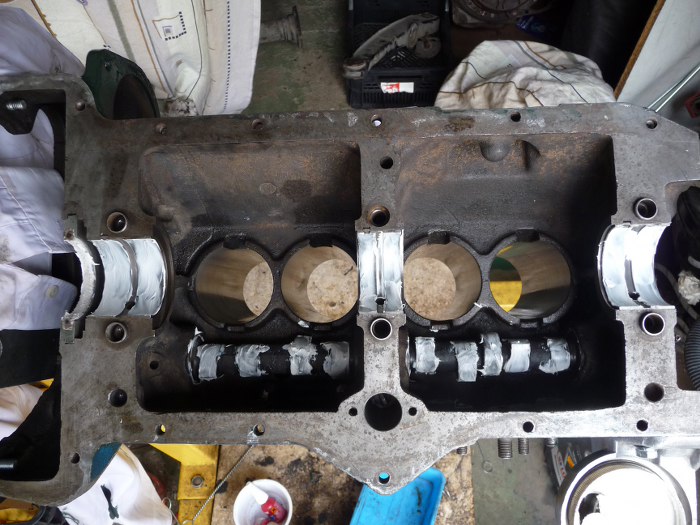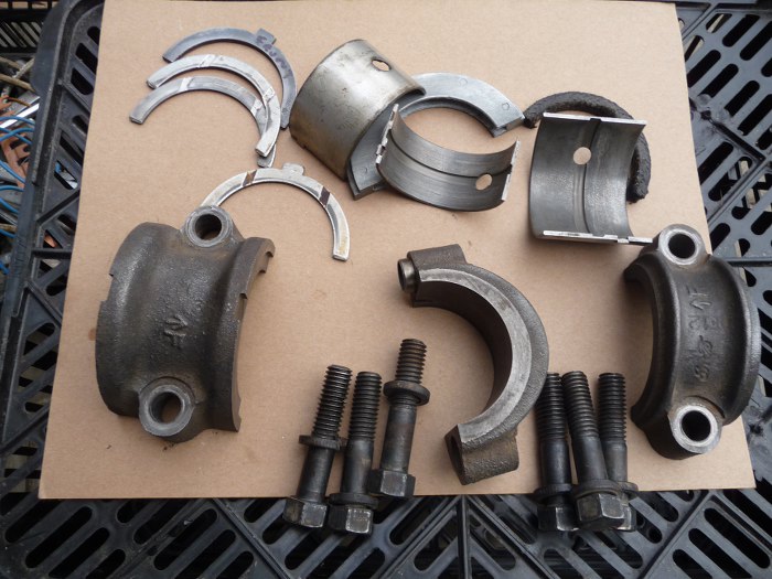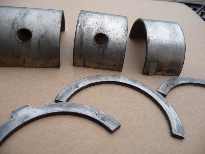 Następnie wziąłem się za przygotowywanie wału korbowego do włożenia. Umyłem wszystkie części. Ponieważ wał zostaje w nominale, a panewki źle nie wyglądają i wszystko ładnie trzyma wymiar, stwierdziłem, że zostają fabryczne (57-letnie!)panewki. Jak ktoś będzie ten silnik rozkręcał za 50 lat, żeby zrobić remont, to się dopiero zdziwi! :)