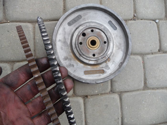 Koło zamachowe ma zjechany wieniec. Możliwe, że to nawet działało, ale optymalnie na pewno nie. Trzeba coś z tym zrobić.
