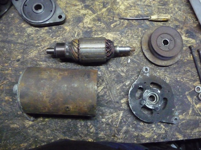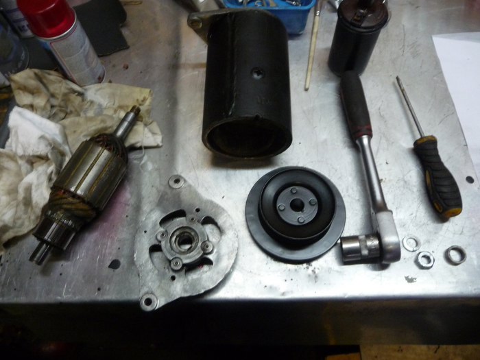 Tu widać prądnicę przygotowaną do składania. W sumie ani rozrusznik ani prądnica nie wymagały regeneracji, tylko oczyszczenia i pomalowania.