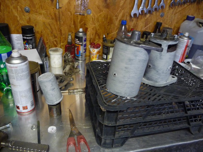 Potem oczyszczone obudowy pomalowałem podkładem (a potem na czarno).