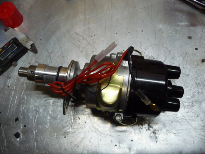 Stary aparat zapłonowy jak pamiętasz miał pękniętą obudowę. Zamiast szukać oryginału Artur znalazł nowy zamiennik, już z elektronicznymi bebechami zamiast klasycznego przerywacza.