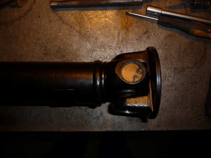 Gotowe. Przedniej części nie mocowałem do wału, tylko włożyłem ją w ogon skrzyni biegów jako zatyczkę, żeby olej się nie wylał.