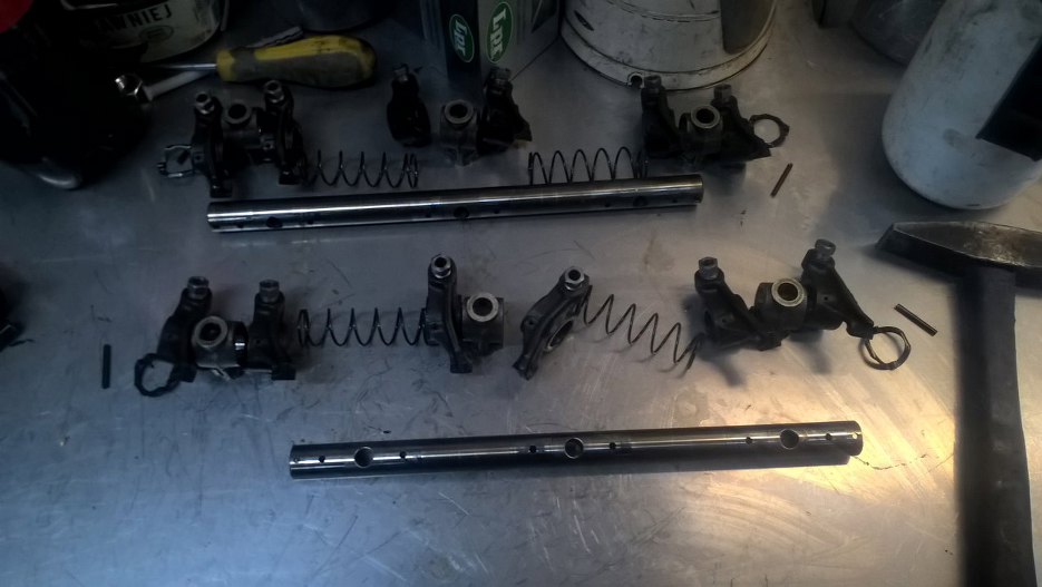 Dźwigienki zaworowe też rozłożyłem. O dziwo, były w bardzo dobrym stanie. Na wszelki wypadek odwróciłem ośki do góry nogami, żeby pozbyć się śladów zużycia.