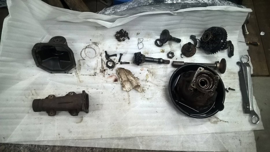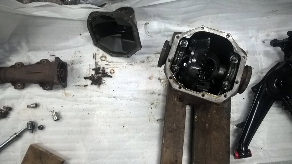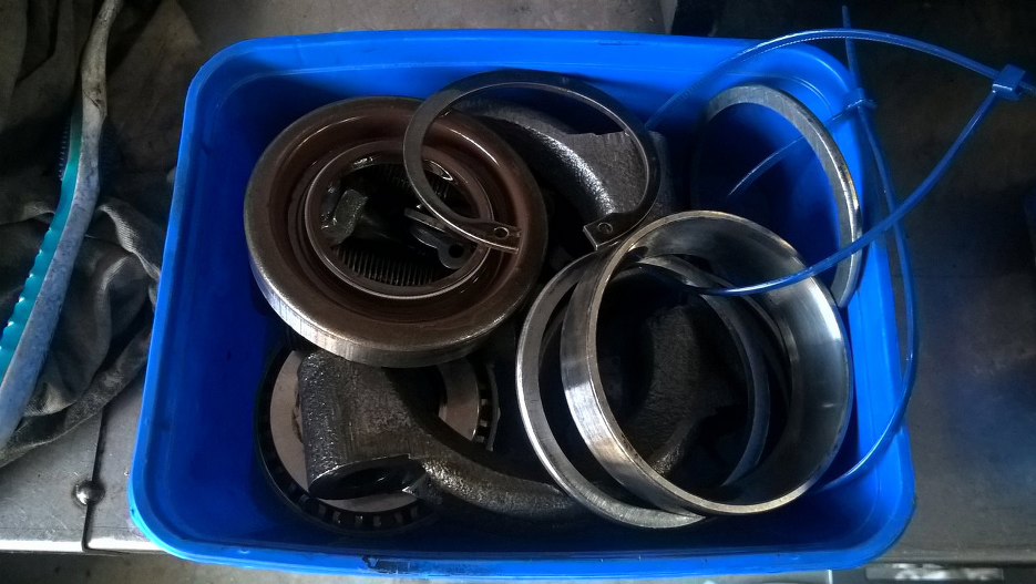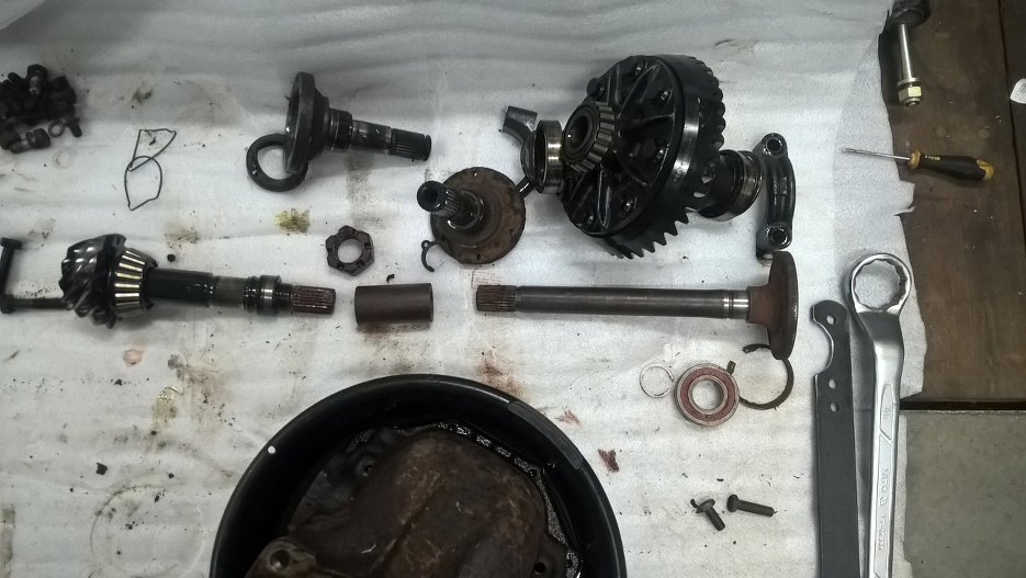 Wyjąłem półośki i odkręciłem podpory łożysk.