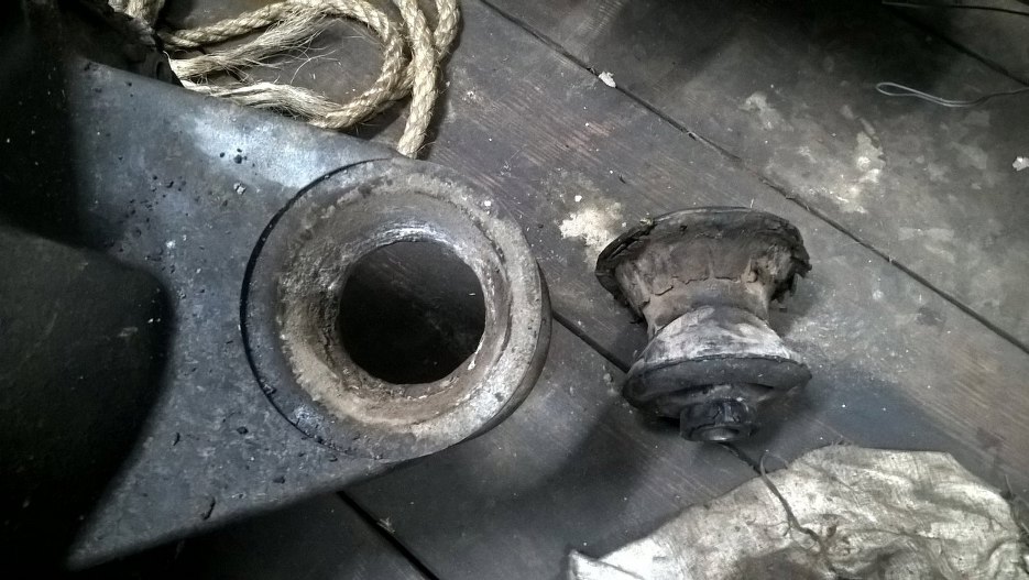 Z pokrywy wyjąłem poduszkę, na której to wisi w karoserii. Widać, że ta akurat część jest do wywalenia. Na szczęście Piotr ma w swojej Granadzie założoną tą poduszkę z poliuretanu, więc przełożymy ją tutaj przy wkładaniu do auta.