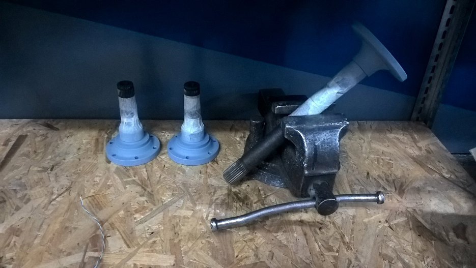 Półośki i flansza wału napędowego oczyszczone i pomalowane (tu na razie tylko podkładem).