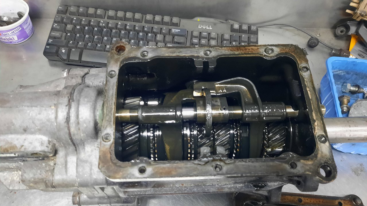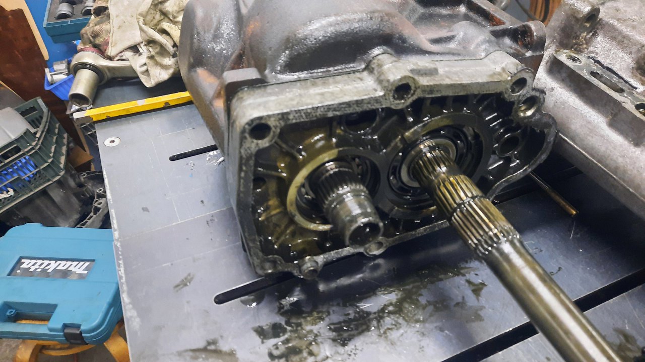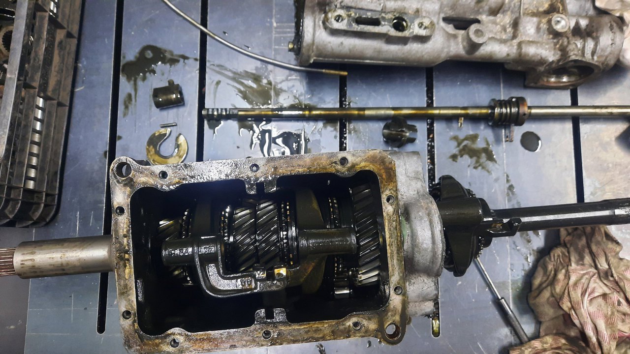 W środku dość typowo, wszędzie brudny olej. Te skrzynie nie mają nawet korka spustowego, jedyny sposób na zmianę oleju, to przewrócenie samochodu na dach... dlatego tu jest tak brudno, bo olej jest prawdopodobnie tu od nowości.