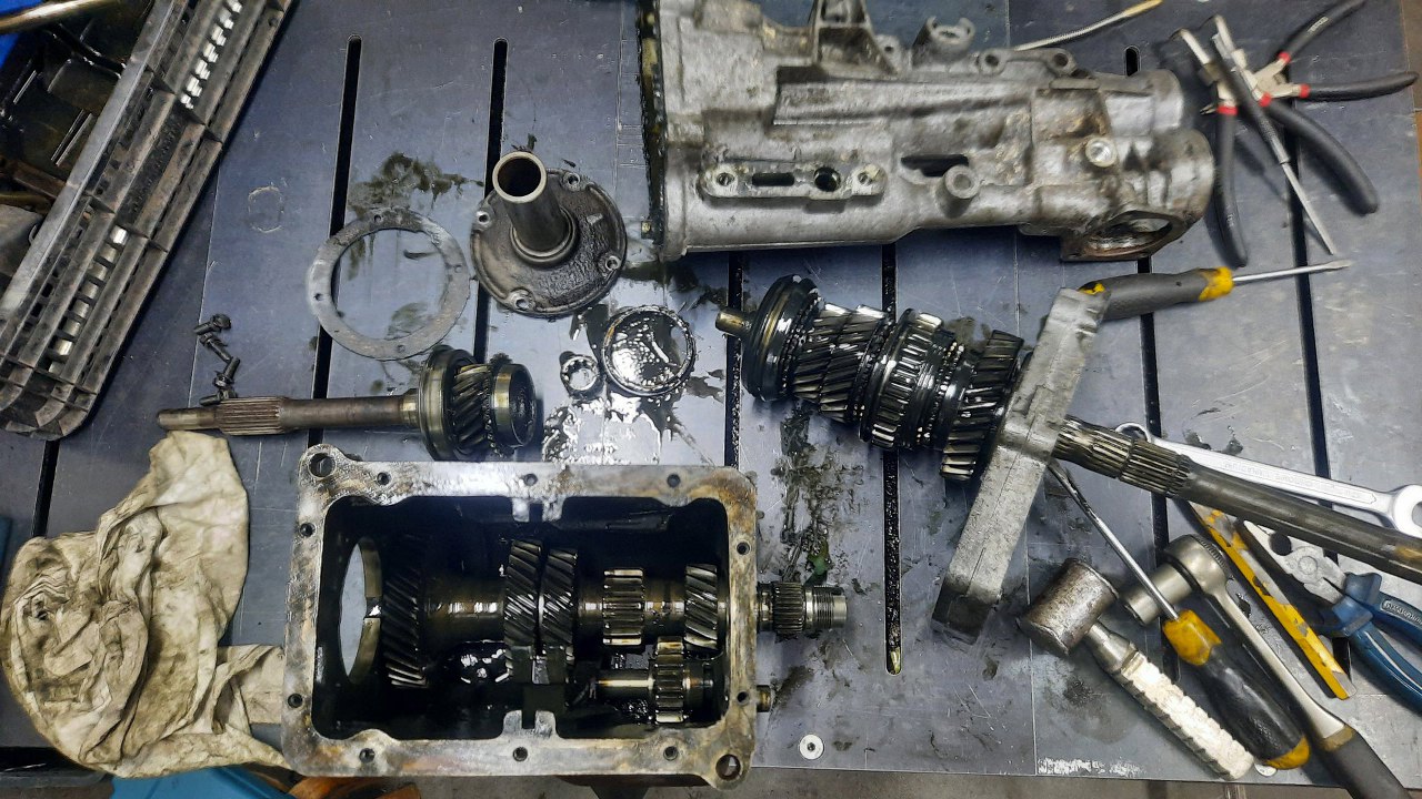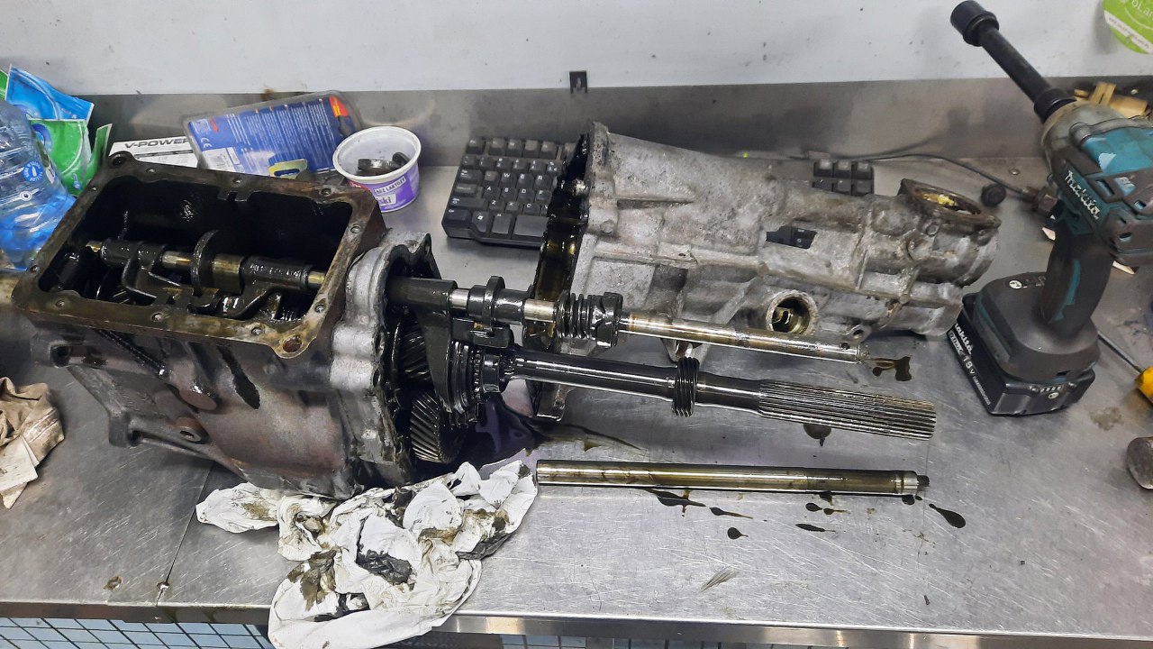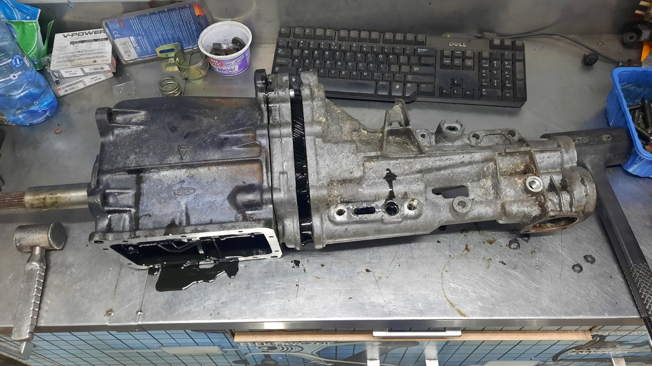 Piotrek nosi się z zamiarem włożenia do Granady silnika 2.8. Niestety, jeszcze tego silnika nie zbudowałem :). Ale trafiła się na sprzedaż skrzynia 5 biegowa od V6, o tyle ciekawa, że z przełożeniami od 2.8 - były inne niż w pozostałych V-kach. Ponieważ obecnie w Granadzie jest skrzynia 4 biegowa, Piotr wyraził chęć zamiany tych skrzyń. Skrzynia 5 biegowa została kupiona i trafła do mnie.