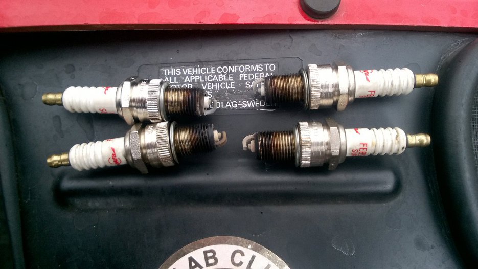 Świece trochę za białe - albo coś z zapłonem, albo nieco za uboga mieszanka, ale gaźnik był ustawiany przez znanego w Warszawie specjalistę, z tego co widziałem po pracy silnika - dobrze.