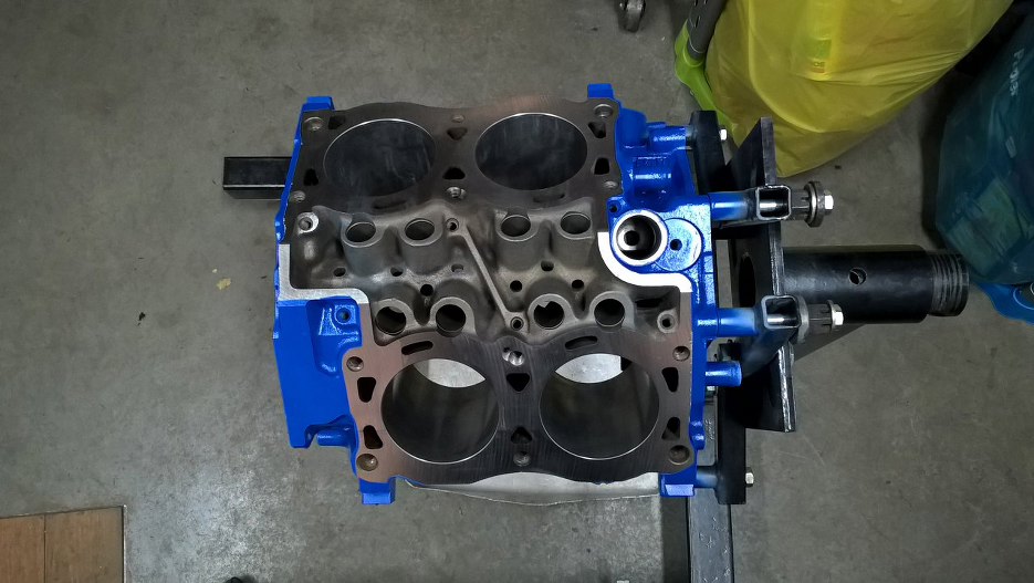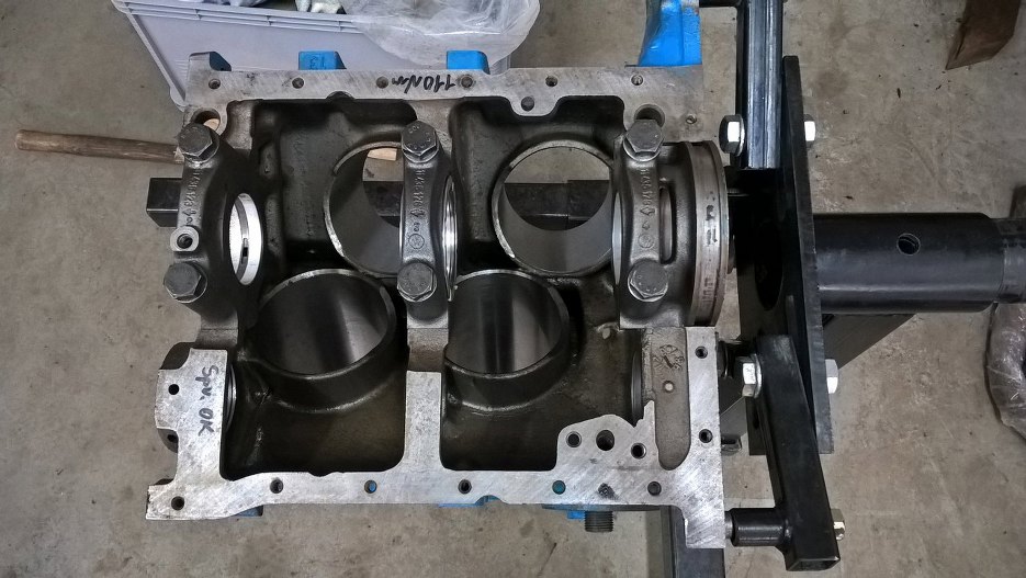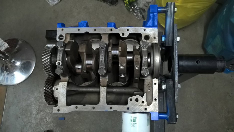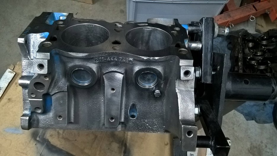 Silnik po dłuższym pobycie wrócił ze szlifierni. Długo to trwało, bo był spory problem z częściami - drugi wał korbowy (od 1.7, bo zmieniamy pojemność) był popękany, dopiero kolejny był ok. Potem był problem ze sworzniami tłokowymi i różne takie. Ważne, że już mogę wziąć się za składanie.