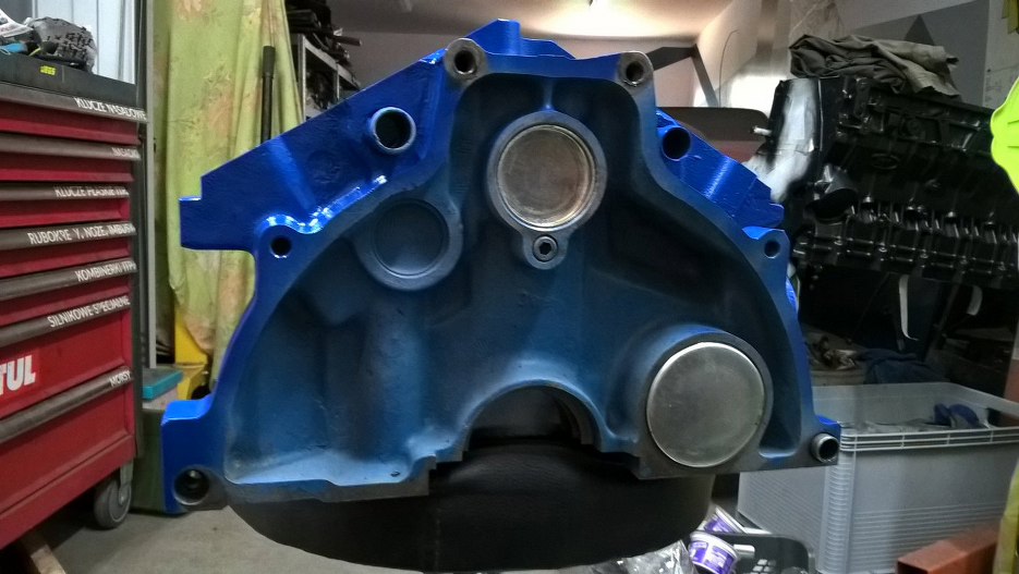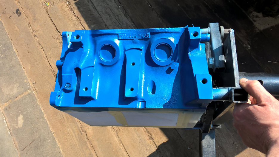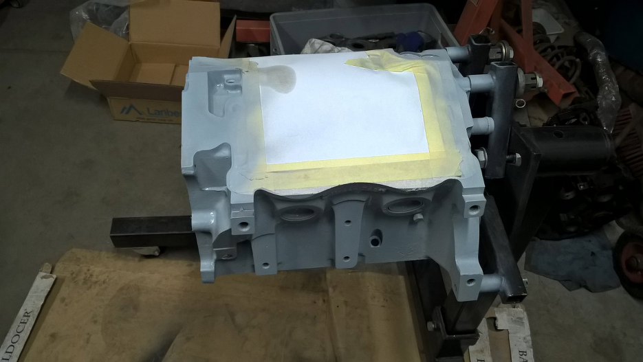 Po bardzo dokładnym myciu blok został odtłuszczony, a następnie zabezpieczyłem go do malowania. Tu już zdjęcie po położeniu podkładu epoksydowego.
