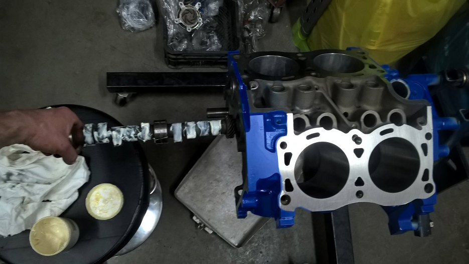 Następnie blok trafił z powrotem na stojak i włożyłem wałek rozrządu.