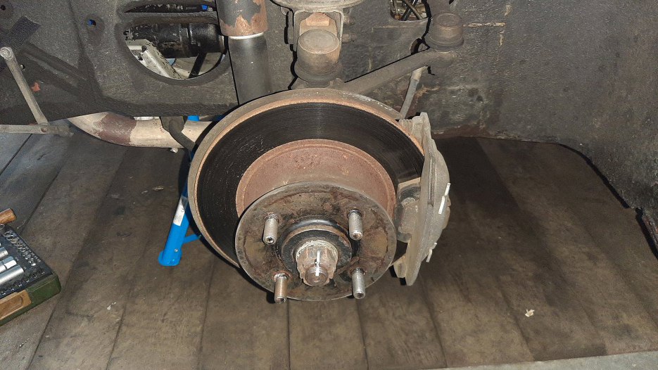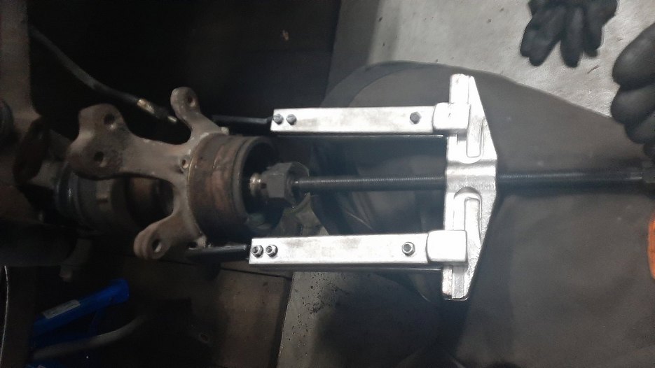 Odkręciłem zacisk i nakrętkę półosi, zdejmuję piastę.
