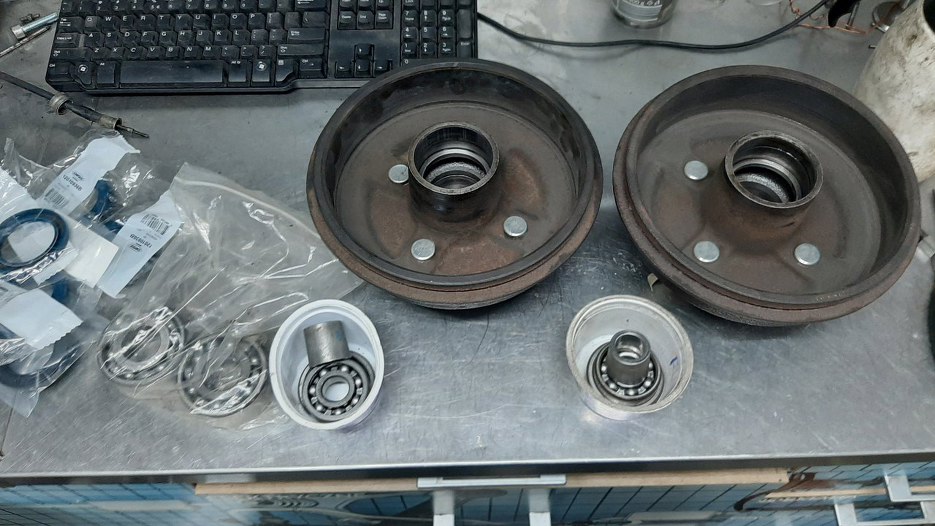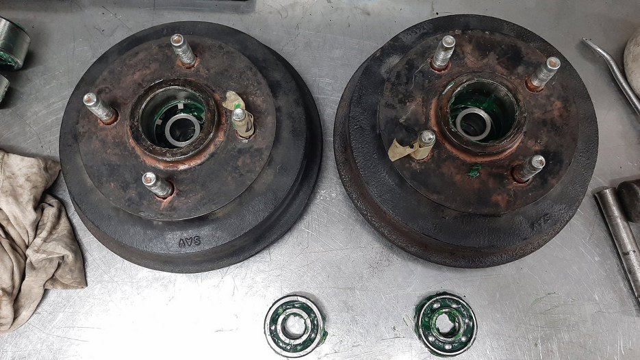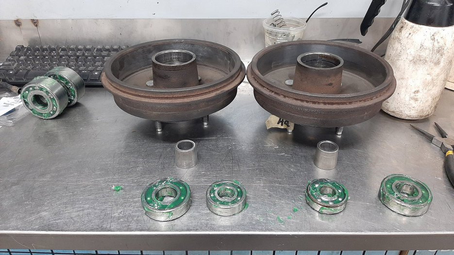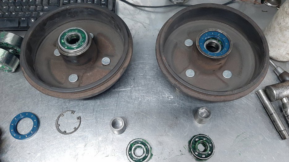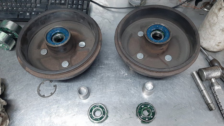 W międzyczasie jak czekałem na ocynki i proszki zająłem się tylnymi piastobębnami. Łożyska dokładnie oczyściłem z resztek starego smaru.