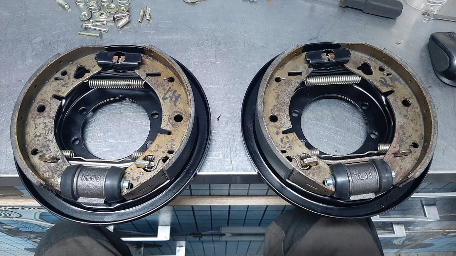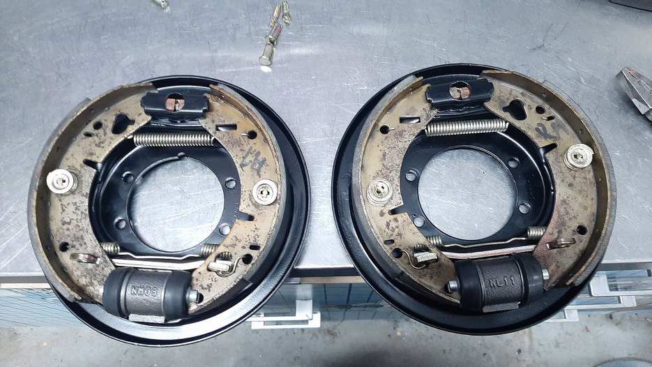 Wkręciłem regulator szczęk (na dole tarcz kotwicznych) i zamontowałem nowe cylinderki hamulcowe.