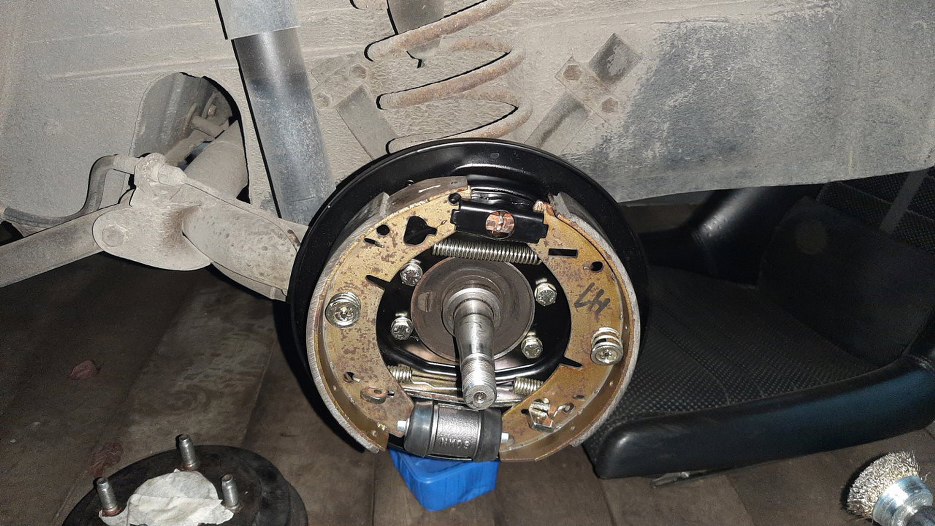 Założyłem bębny hamulcowe i wyregulowałem wstępnie szczęki.