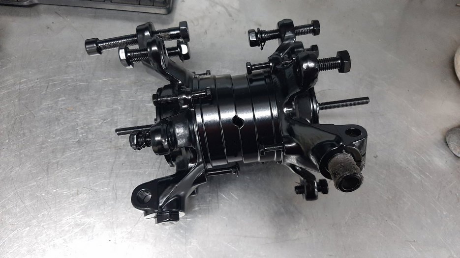 Do malowania proszkowego oddałem też zwrotnice przednie w postaci śrubkowego jeżyka.