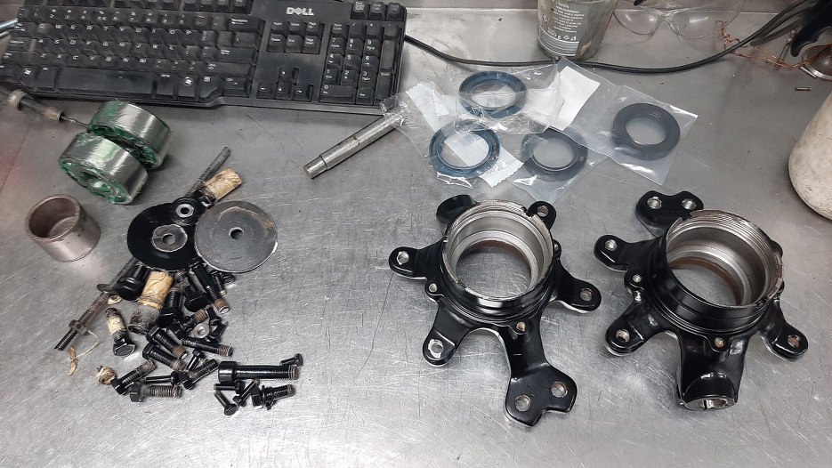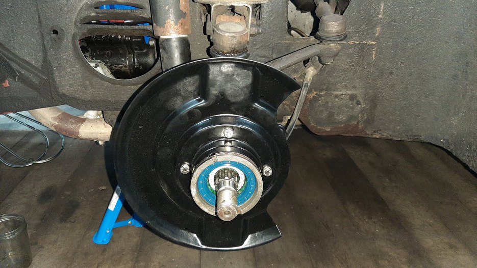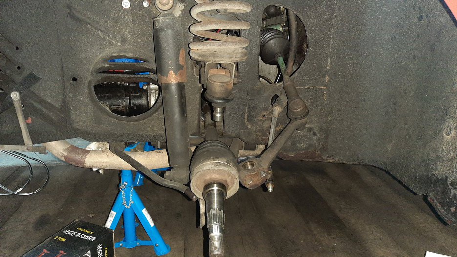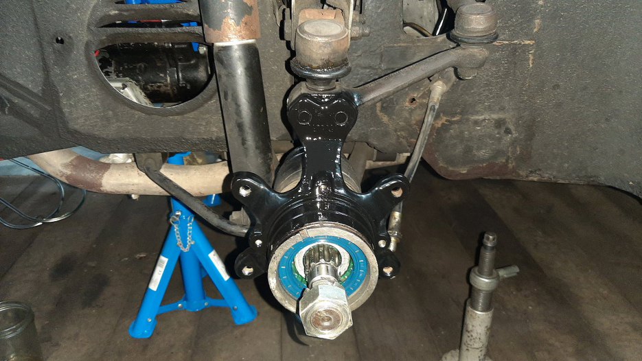 Założyłem zwrotnice. Nie było łatwo włożyć półoś w łożysko. Normalnie robi się to na prasie, ja musiałem wykombinować jak to zrobić bez prasy.