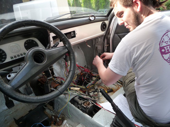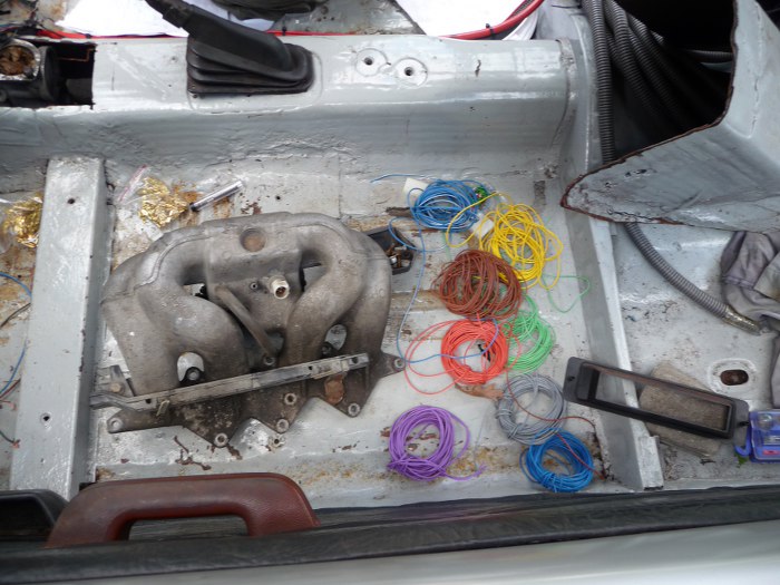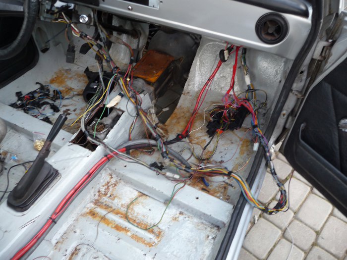 Tak wygląda wiązka we wnętrzu auta. Niedługo będzie już ułożona. W miejscu regulacji nawiewów będzie kawał blachy z włącznikami różnych obwodów.