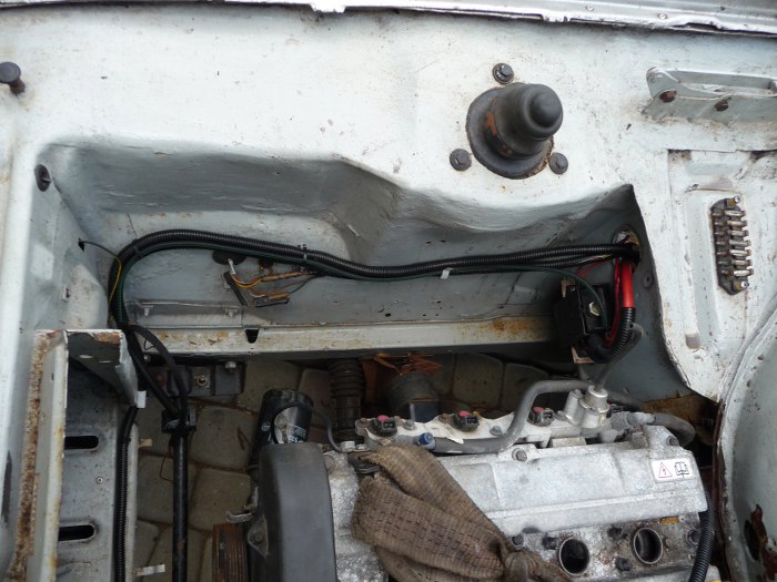 W komorze silnika wiązka już położona. Wiązki silnika jeszcze zupełnie nie ma.
