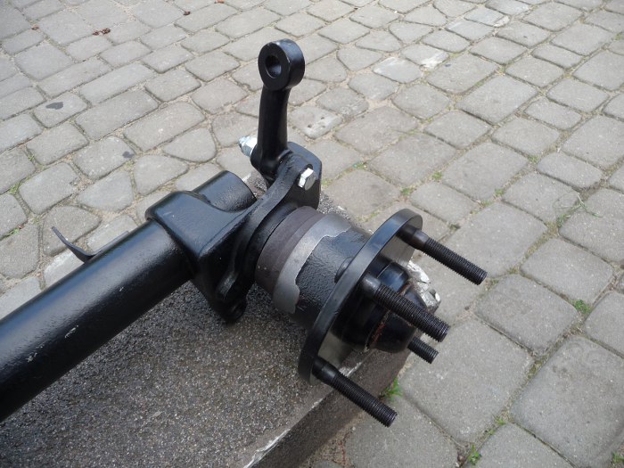 I założone na auto. Potem jeszcze Konar robił jakieś kombinacje z końcówkami drążków kierowniczych, nakrętkami, stabilizatorem itd., ale mi to umknęło. Wiem tylko, że ramiona zwrotnic założyliśmy odwrotnie, więc trzeba je było zamienić z lewej na prawą.