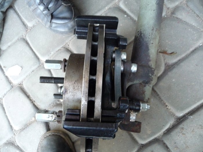 A tak to wygląda przy założonej tarczy hamulcowej.