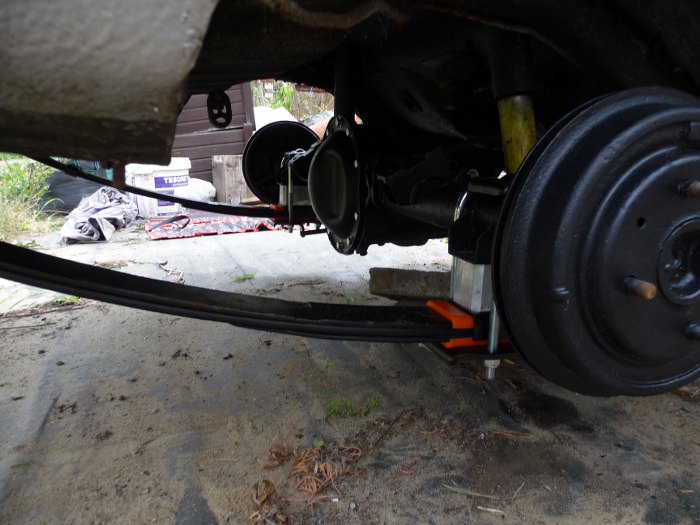 Założone na samochód (uwaga na boku od Konara - pierwszą rzeczą do zrobienia jak auto zacznie jeździć to pospawanie podłużnicy), do tego klocki obniżające Graystona.