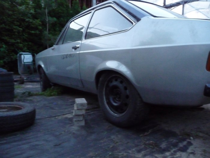 I po raz pierwszy od długiego czasu Escort stoi na własnych kołach. No może nie własnych, bo pożyczonych ze Scorpio Konara, ale zawsze nie na kobyłkach :) Koła oczywiście są za duże, ale potęgują efekt obniżenia zawieszenia.
